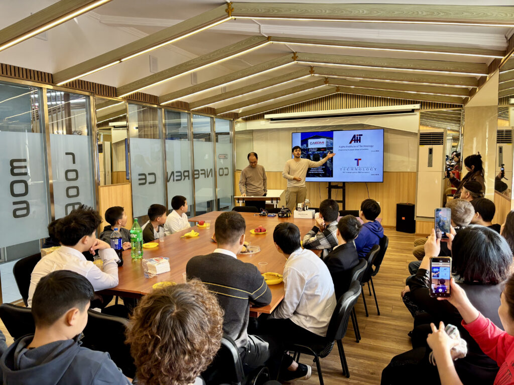 In late November, the Alpha Institute of Technology (AIT) under CAEDMI had the pleasure of welcoming students from School-Gymnasium No. 24 named after Aaly Tokombaev to our campus for an information session and an introduction to our engineering and robotics projects.