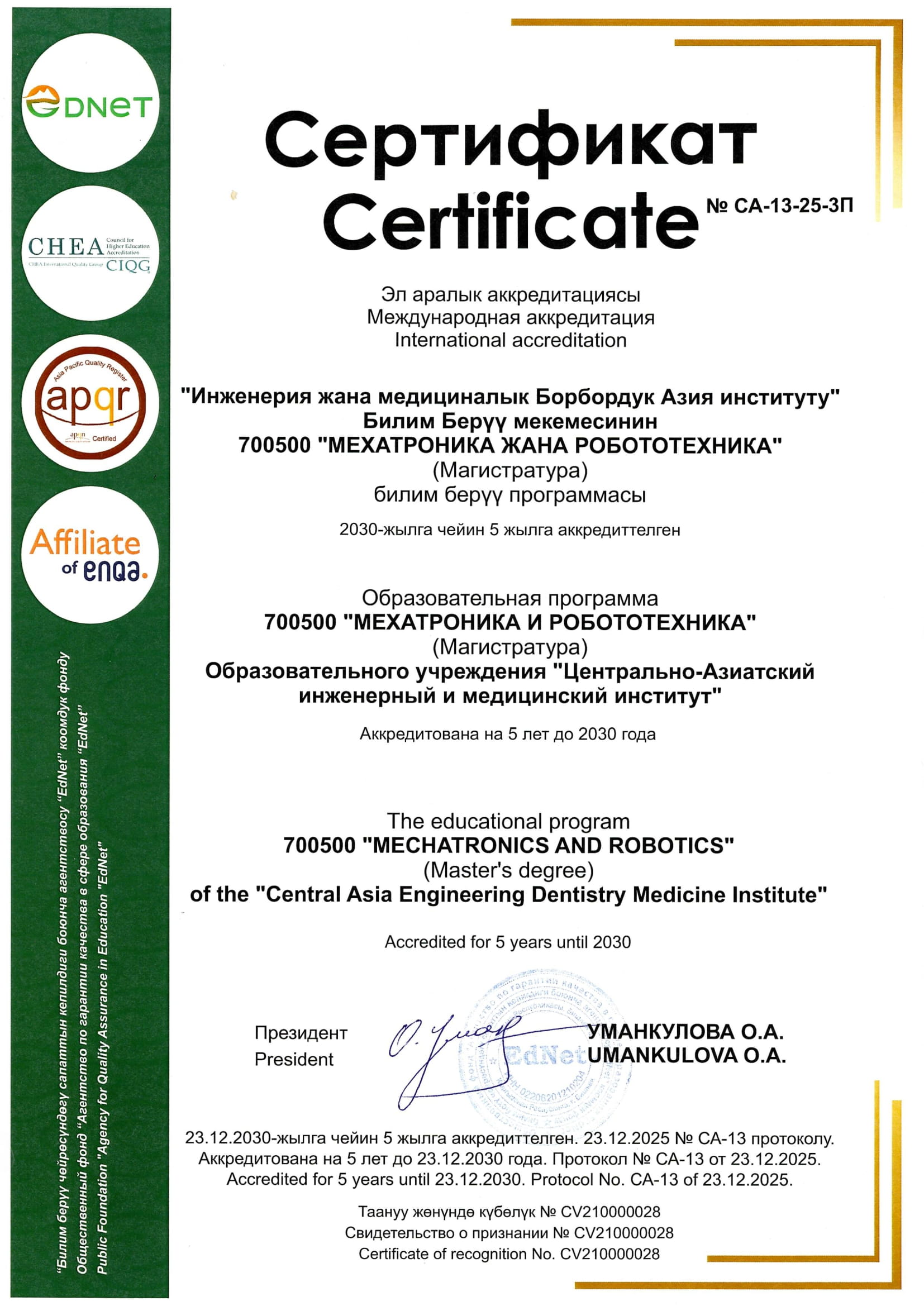 УСТАВ ОБРАЗОВАТЕЛЬНОГО УЧРЕЖДЕНИЯ «Центрально – Азиатский инженерный и медицинский институт» (Central Asia Engineering Dentistry Medicine Institute, CAEDMI)